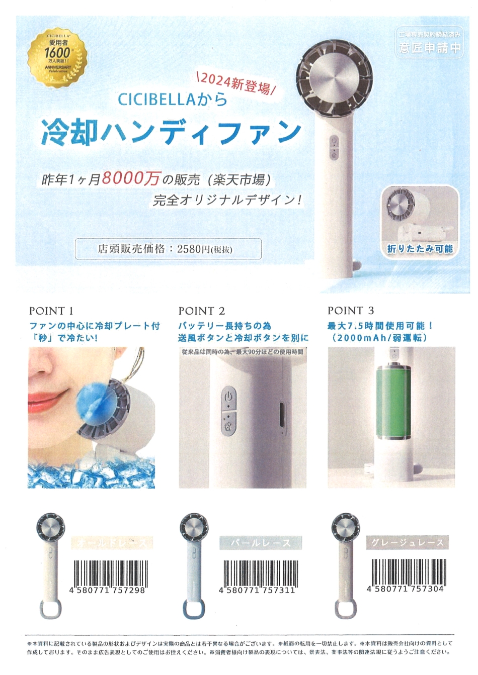酷暑のマストアイテム! 冷却ハンディファンも入荷 ( ゜▽゜)/!