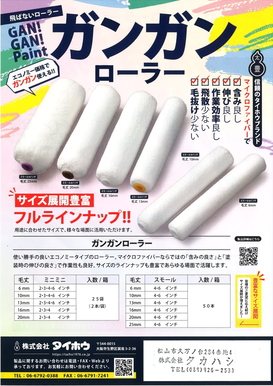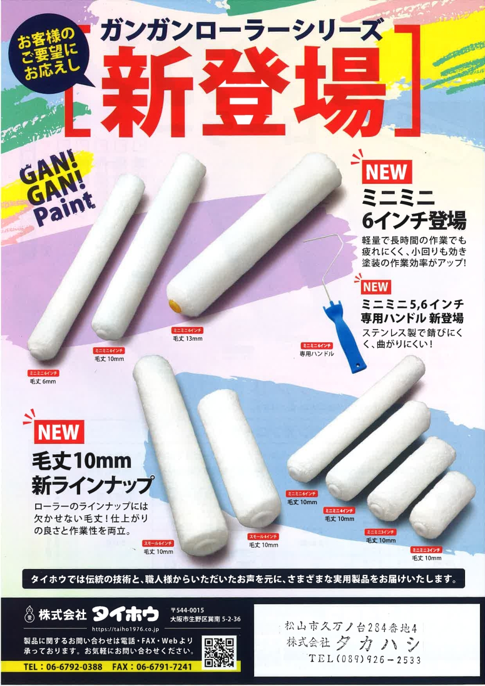 人気のGAN GAN ローラーに、新し毛丈と幅、追加ラインナップ! 現場環境に合わせてさらに選びやすく、合わせやすくなりました! コストパフォーマンスの良いローラーとして人気の、このGAN GAN。 まだお試し出ない方は、ぜひ一度、御試用下さい ヽ(〃^-^)/★!