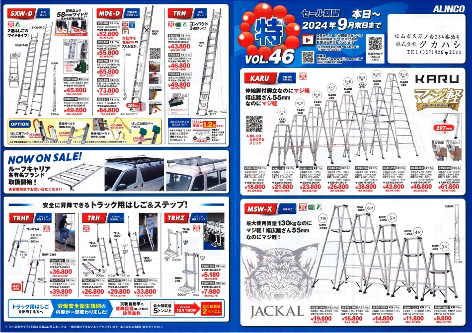 悩ましかった暑い夏も終わり、いよいよ仕事がしやすい秋に突入! そんな秋のお仕事をはかどらせるアルミツールフェアが開催! 秋へ心機一転をされたい方、ぜひこの機会をご利用下さい (*^▽^)ノ!