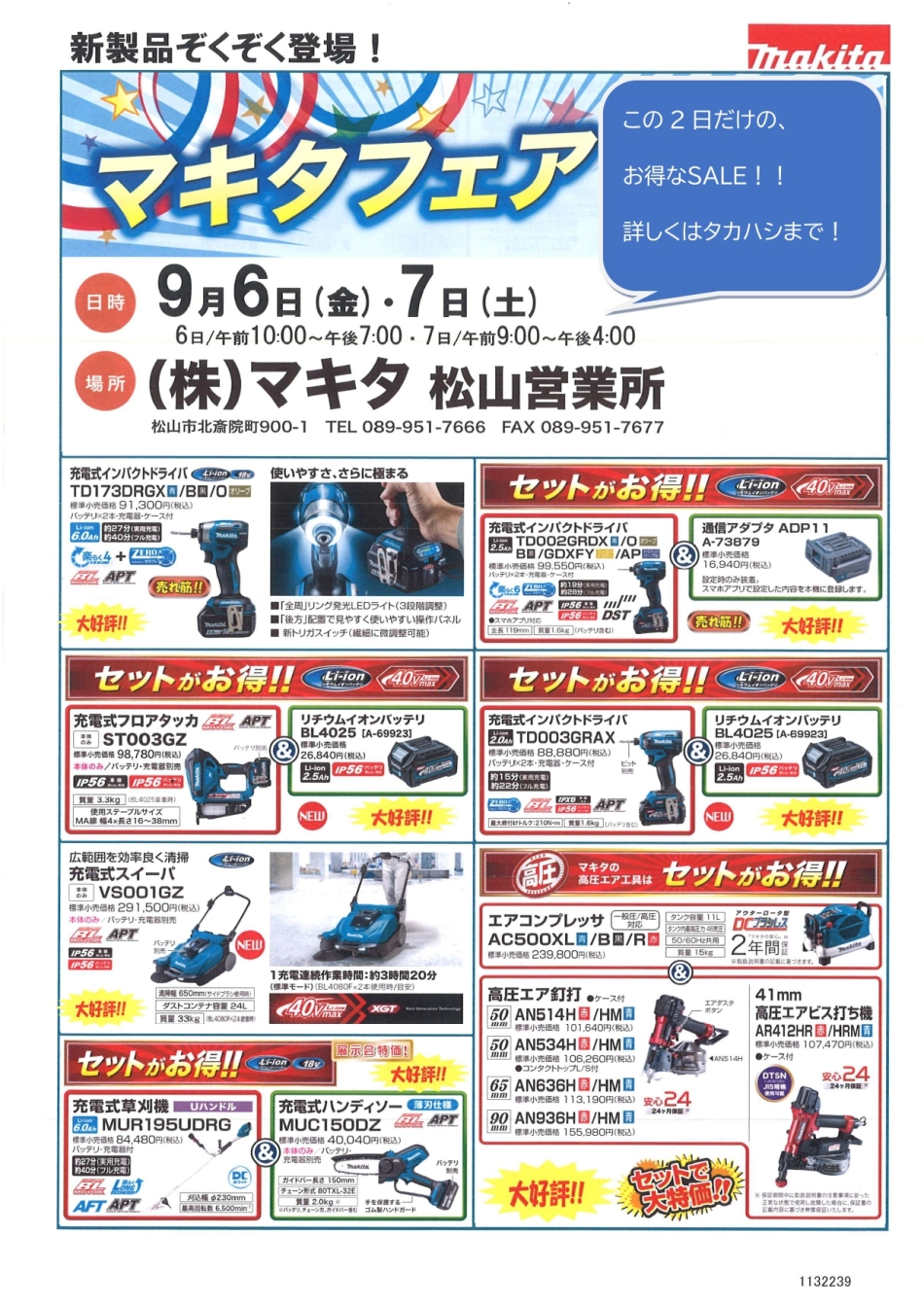 待望! 秋のマキタフェア開催 (* ^-^)ノ!