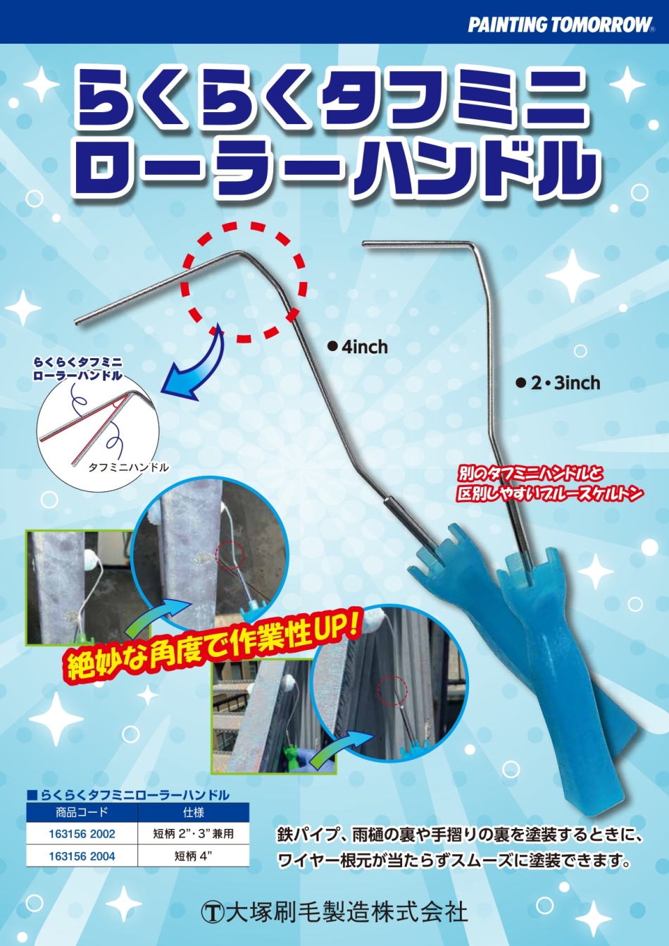 従来品から少し角度をつけただけで、こんなに塗装がしやすい! 新感覚のミニローラーハンドルが入荷していますので、ぜひお試しください ((*'∀')ノ!