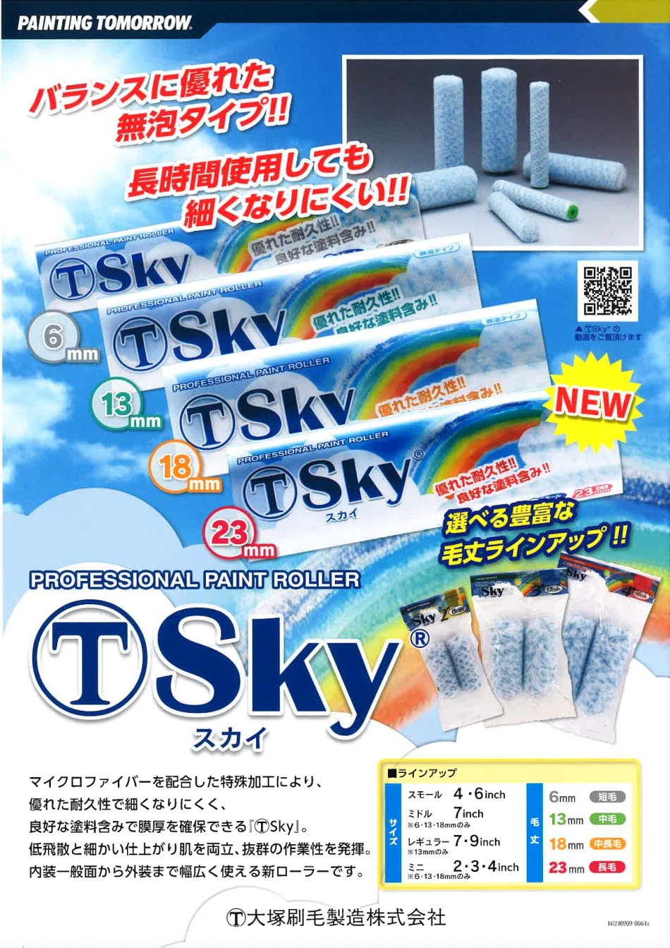 発売から約一年が経過し、今では建築塗装現場で定番のように使われている、ローラーのSky! そのSkyに、待望の長毛タイプ23mmが追加! もちろんタカハシ店頭でたくさん準備していますので、いつでも、お試しください (゜∇^*)!
