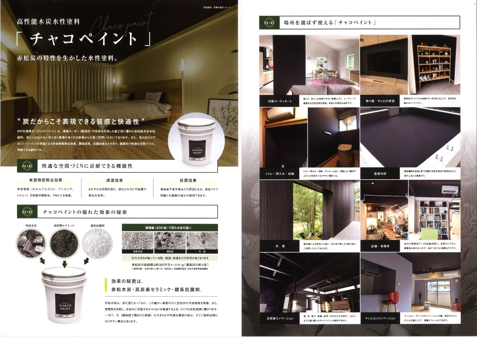炭をベースにした塗料だからこそできる、この質感・調湿性・防塵・抗菌性…。快適リフォームを目指すなら、ぜひ、この木炭水性塗料をお試しください (*^▽^*)ノ!