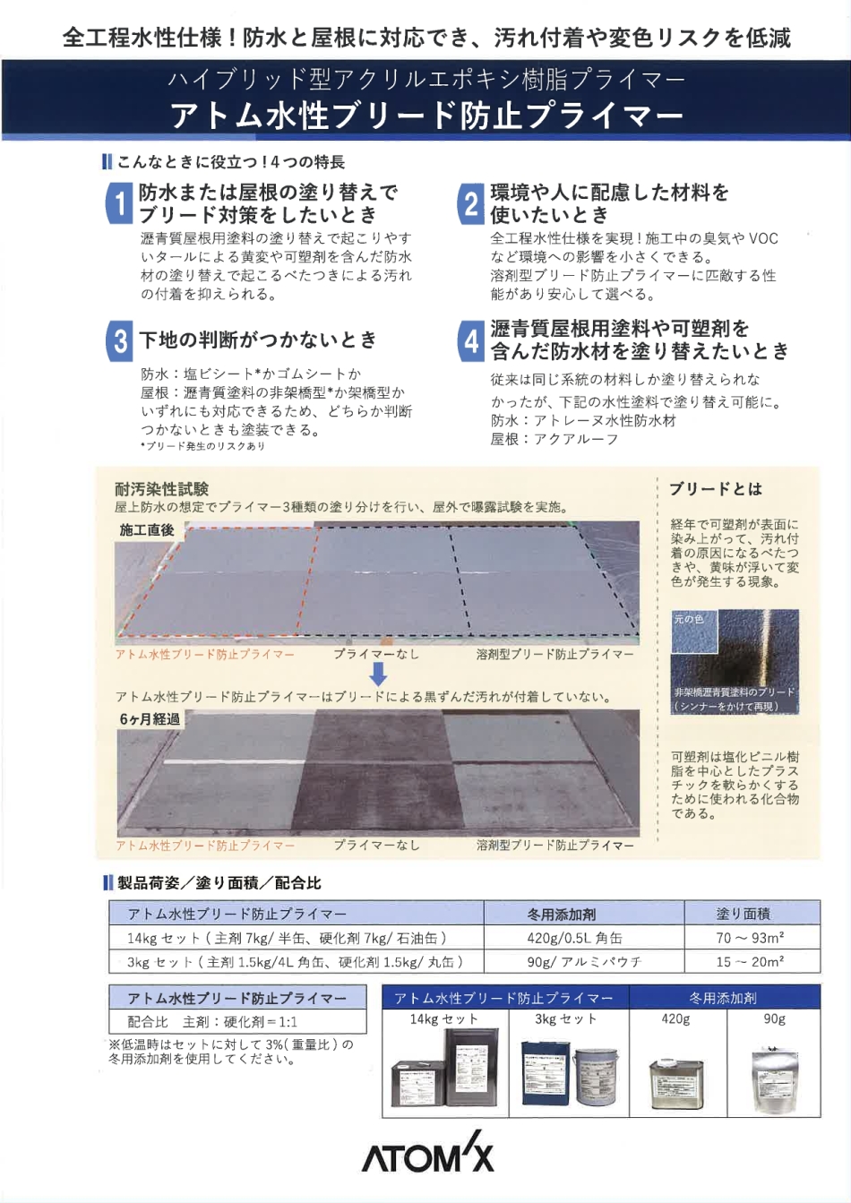 既存の塗材や防水材の上に塗装すると、表面にベタつき・黒ズミ・黄ばみが発生してしまう、ブリード現象。そんなブリード現象が起きないように、がっちりとブリード成分をブロックしてくれる水性のプライマー! 水性でこのブロック具合は称賛ものです! 下地によっては、ぜひ、こちらのプライマーをご採用ください… (/o^∀^o)!