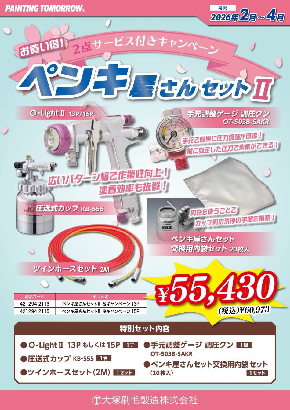 数量限定の桜カラー「O-Light?」! 性能はもちろん、持つ人を選ぶ希少モデル。 高塗着効率のLVMP仕様で無駄なく塗れて、安定した圧力で仕上がりも安定。 必要機材が揃った実用セットで、届いたその日から即戦力。人と違う道具にこだわる職人様たちへ贈るレアツール。 ぜひ、タカハシ店頭で実物をご確認ください… !(^^)!!