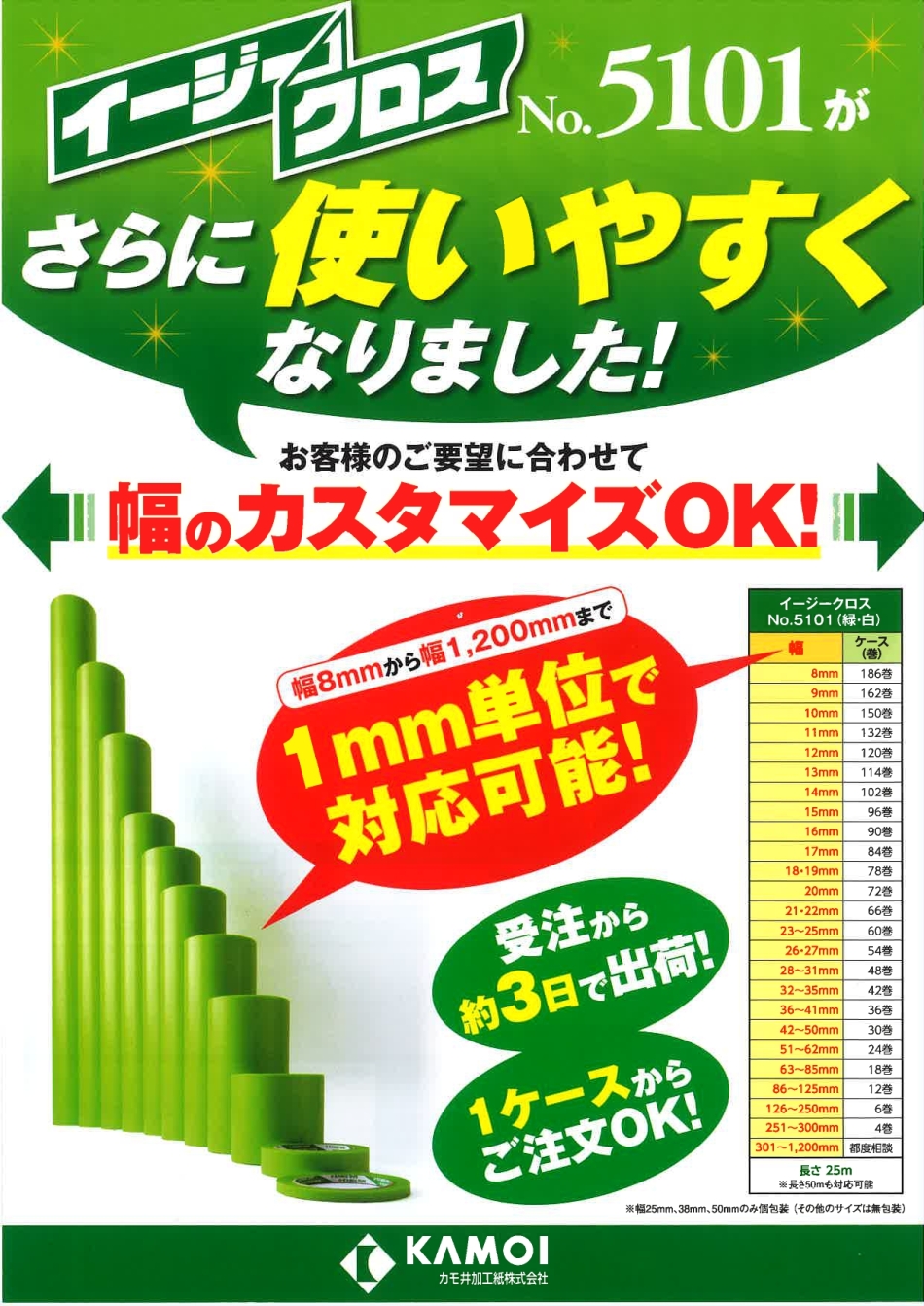 プロの仕事の質は、1mmへのこだわりに表れる! なんと1mm単位で幅をカスタマイズできる養生テープ! 基本サイズでは幅がしっくりこない方は、ぜひ、ご希望のサイズでオーダーください… *^▽^)ノ!